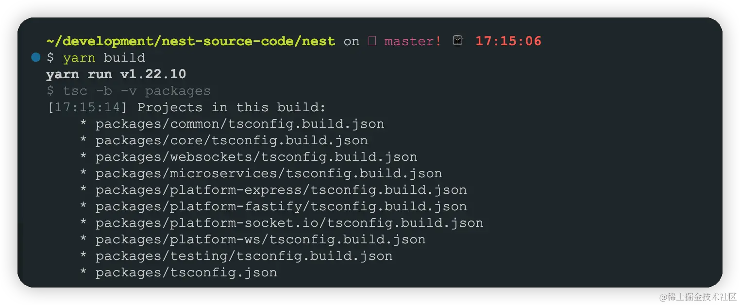 我们项目中通过npm下载的Nest包依赖是没有sourcemap的,如果想要调试Nest的TS源码,就必须要用到sourcemap了,得自己构建。来看看Nest是如何构建的