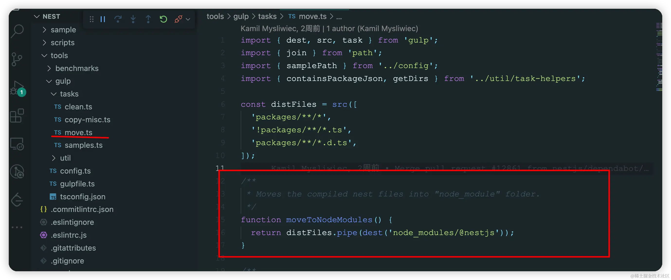 执行build命令时,首先通过tsc对packages的包进行编译,完成之后通过执行move命令,move:node_modules是通过gulp工具来执行的,看这里