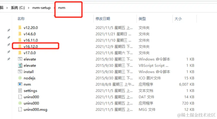 在该安装好的 nvm 目录下放置你所需要的各个版本的 node 环境 , 如图所示: