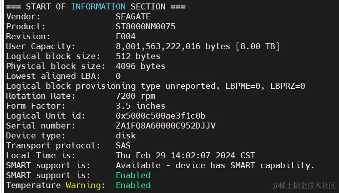 smartctl -i /dev/sdb的主要结果: