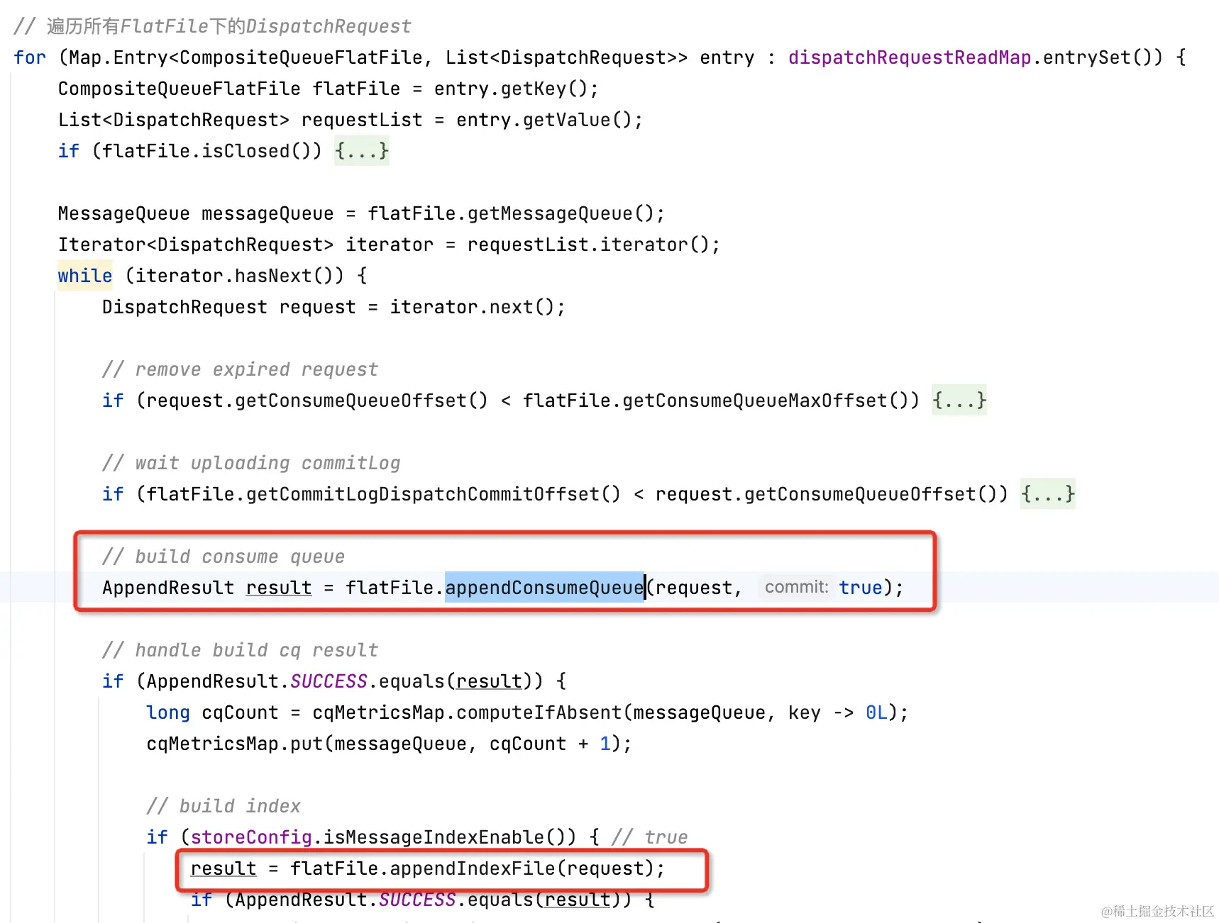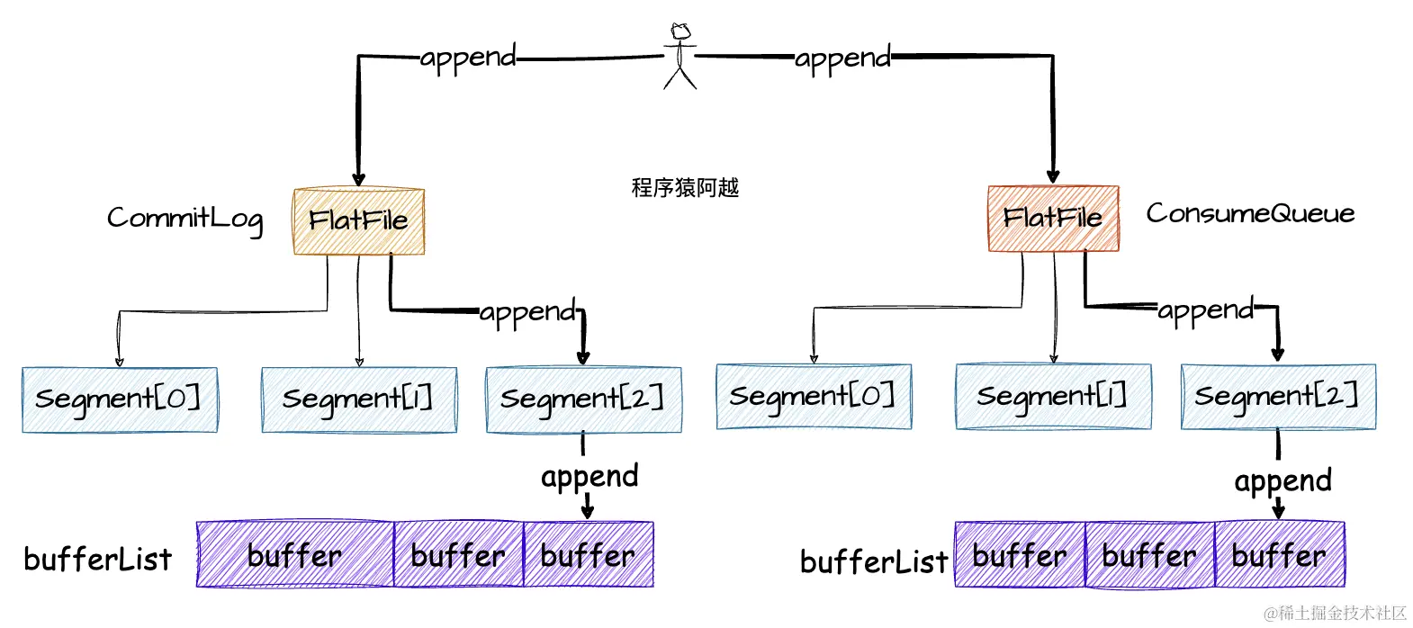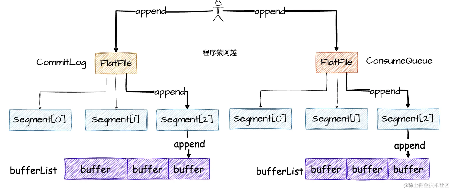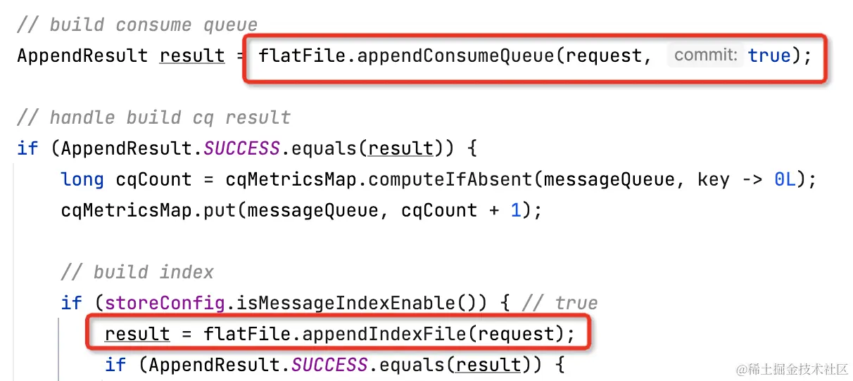 无论是commitlog还是consumequeue,底层都是写FlatFile中的当前TieredFileSegment。