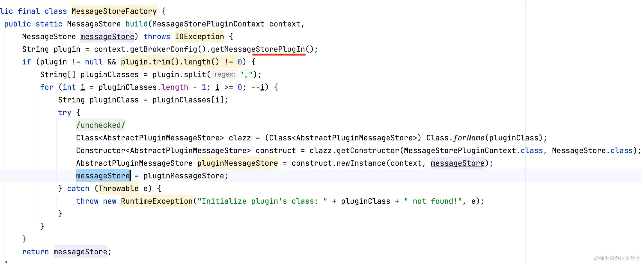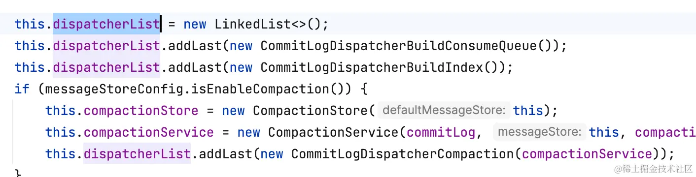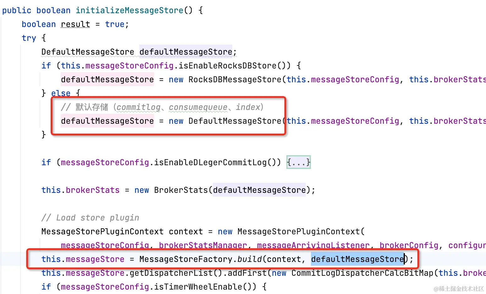 BrokerController#initializeMessageStore:broker启动创建MessageStore。