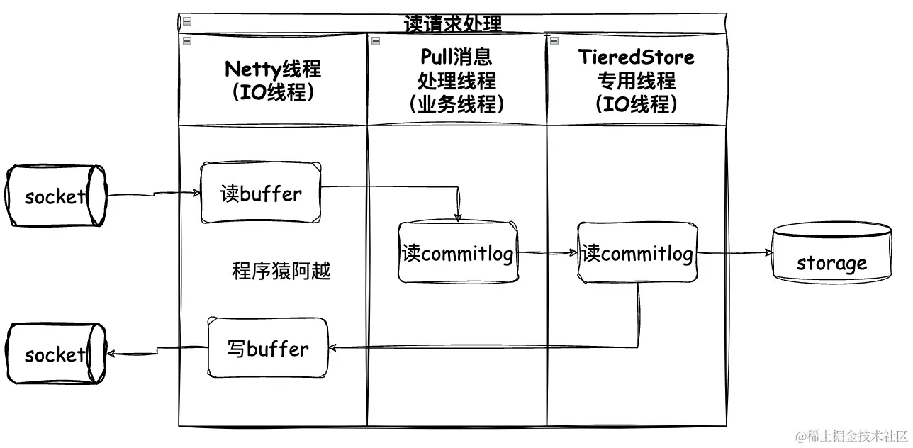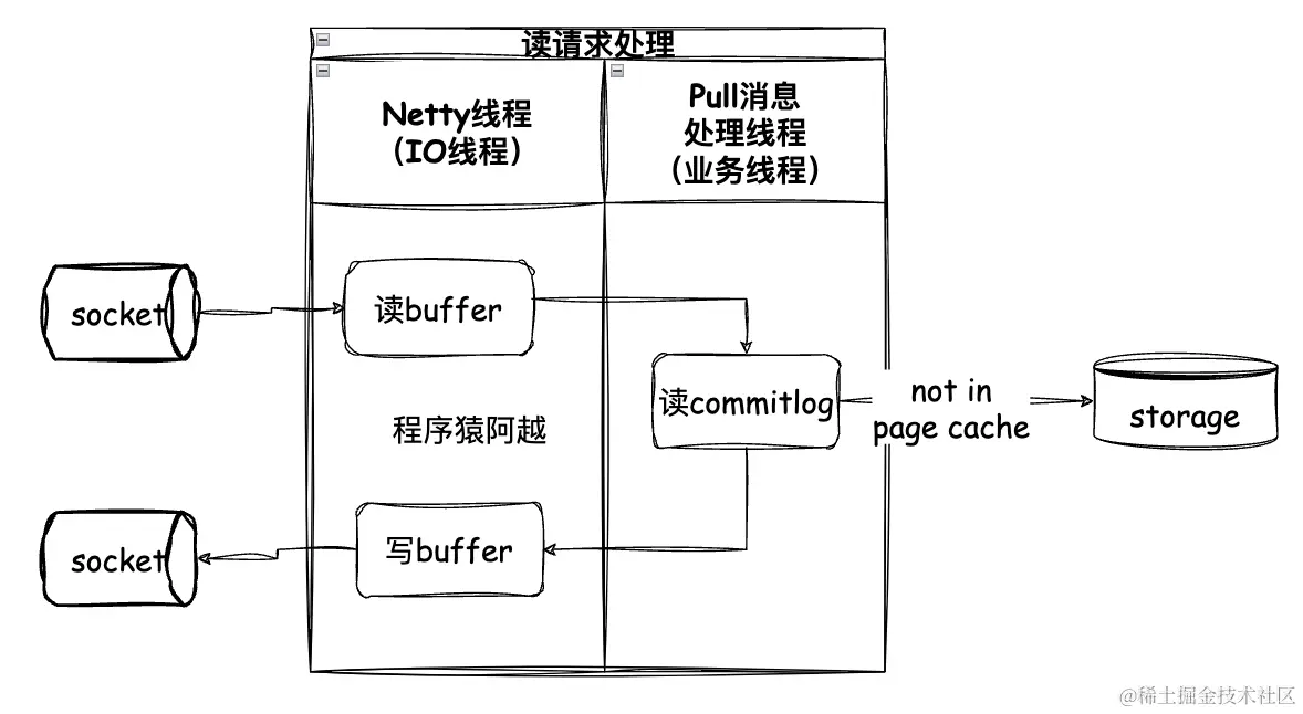 - MessageStore仅支持同步读消息的api,当消息不在pagecache时(冷读),工作线程会阻塞读,然后堵住其他请求;