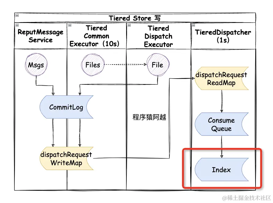 分层存储consumequeue写入成功后,触发index写入。
