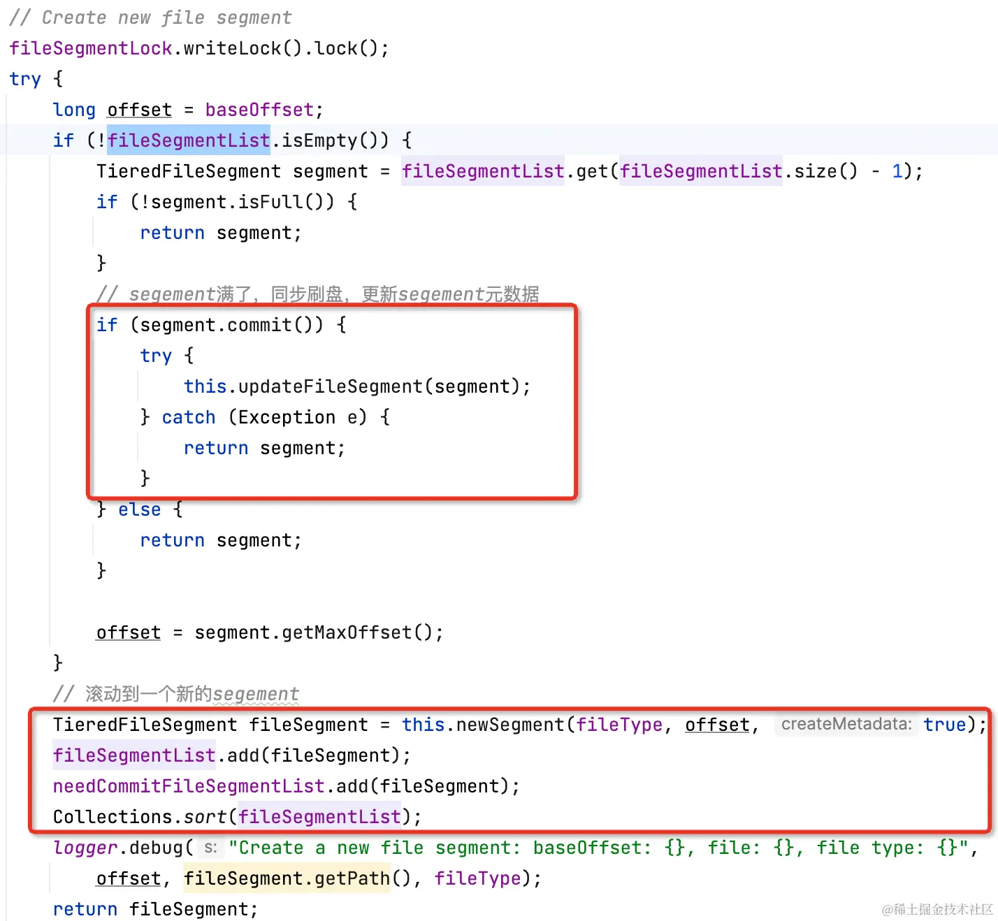 TieredFileSegment如果写满了(比如commitlog是1g),会滚动一个新的segment。