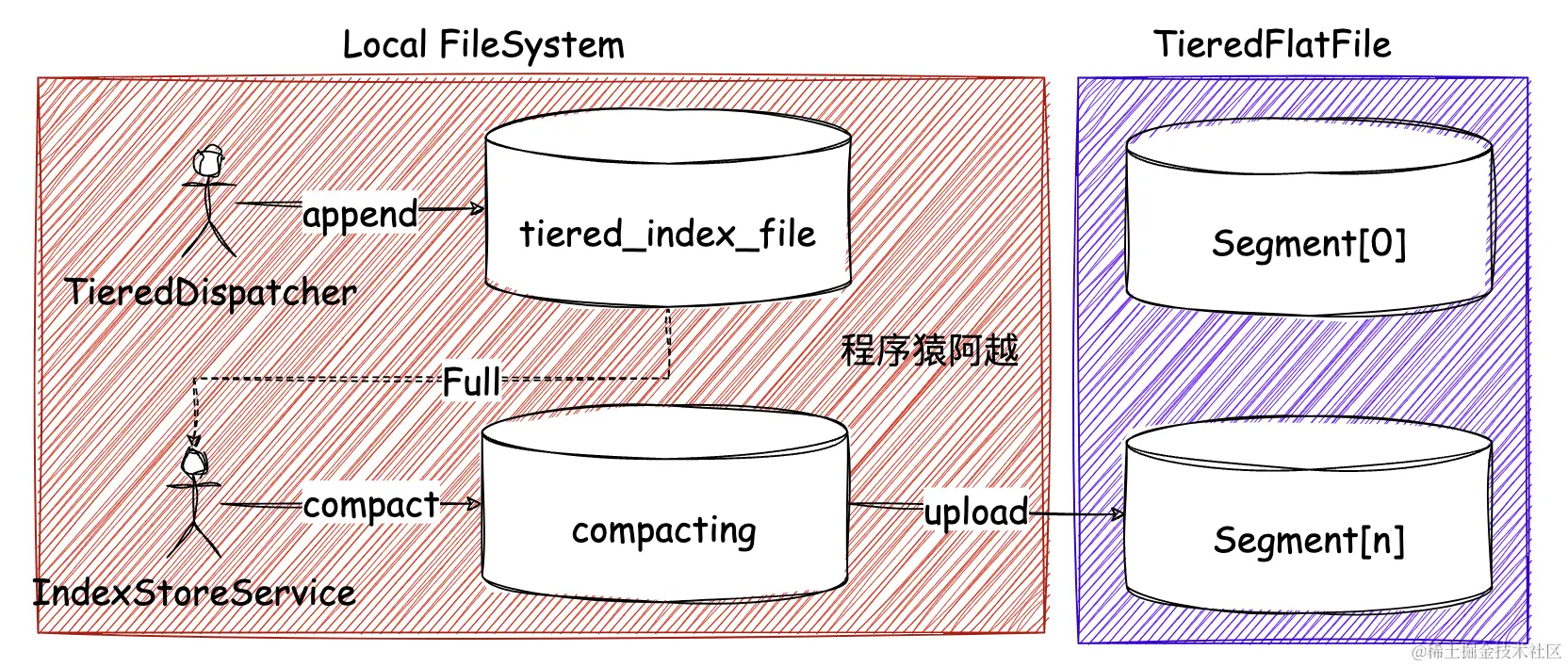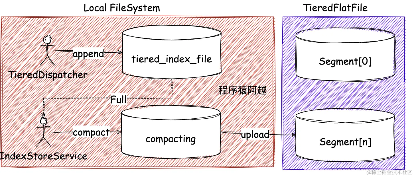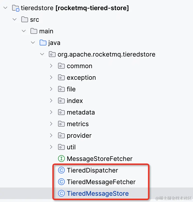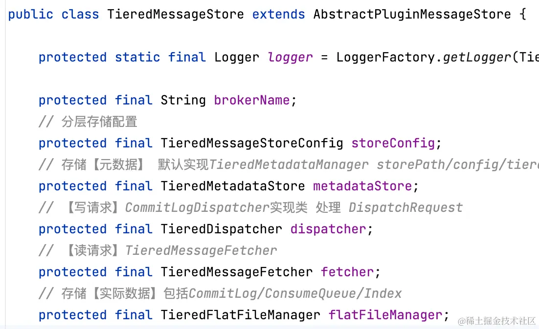 - tieredBackendServiceProvider:分层存储-消息数据存储,TieredFileSegment实现类,官方实现demo-PosixFileSegment,存储到当前文件系统的tieredStoreFilePath指定路径下;(类比kafka的remote.log.storage.manager.class.name)