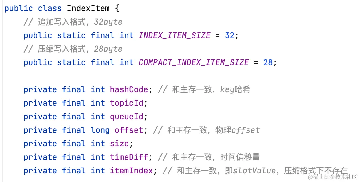 UNSEALED,非压缩格式,索引项比主存多了topicId、queueId、size(消息大小)。