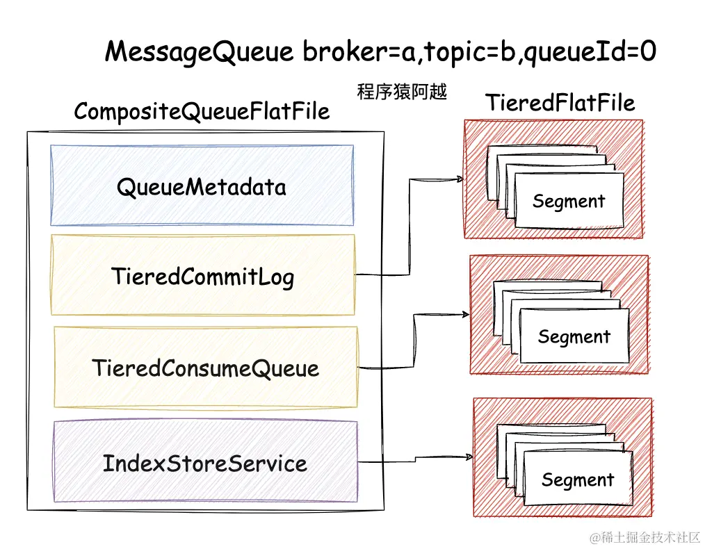 commitlog和consumequeue都有一个FlatFile包含n个TieredFileSegment,一个Segment可以理解为一个外部存储中的文件。