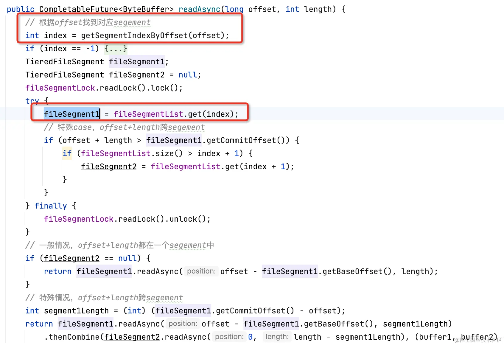 未命中缓存/预读,通过offset二分查找定位segment,调用segment#read0(用户实现)得到buffer。