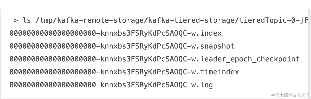 producer发送n条消息,触发segment.bytes阈值,/tmp/kafka-remote-storage中产生多个数据文件。