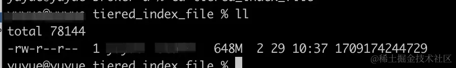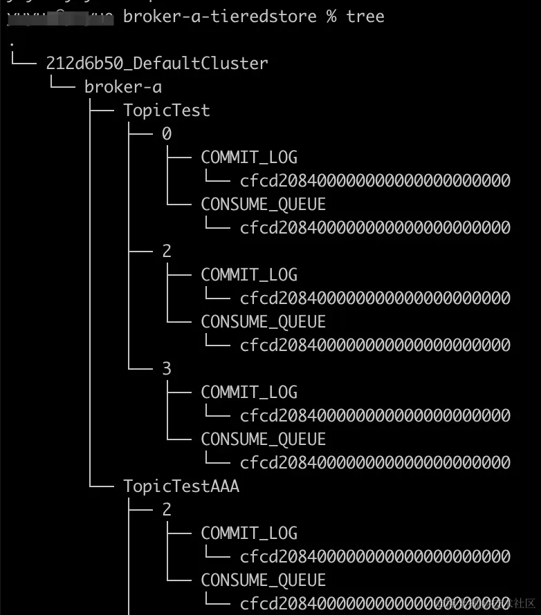 在tieredStoreFilePath路径下可以看到另一份消息数据,按照Cluster/Broker/Topic/queueId/数据类型/数据文件的方式存储。