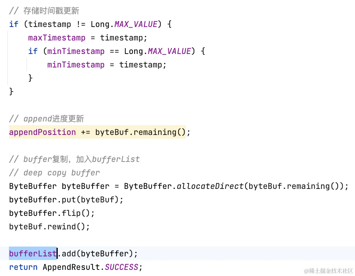 TieredFileSegment会将数据先写入内存bufferList。