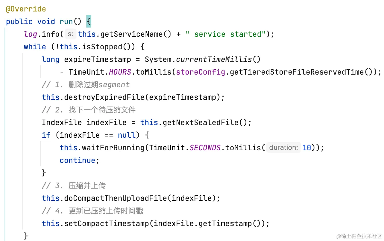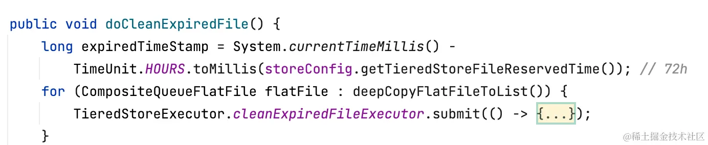 Segment的生命周期都由rocketmq管理,默认情况下三类segment的保留时间都是72h(tieredStoreFileReservedTime)。