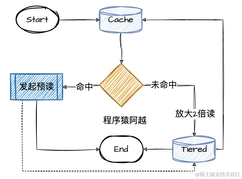 当缓存未命中,放大2倍拉n条。