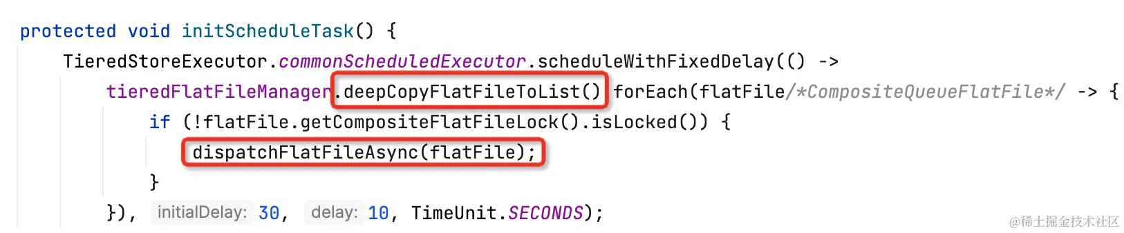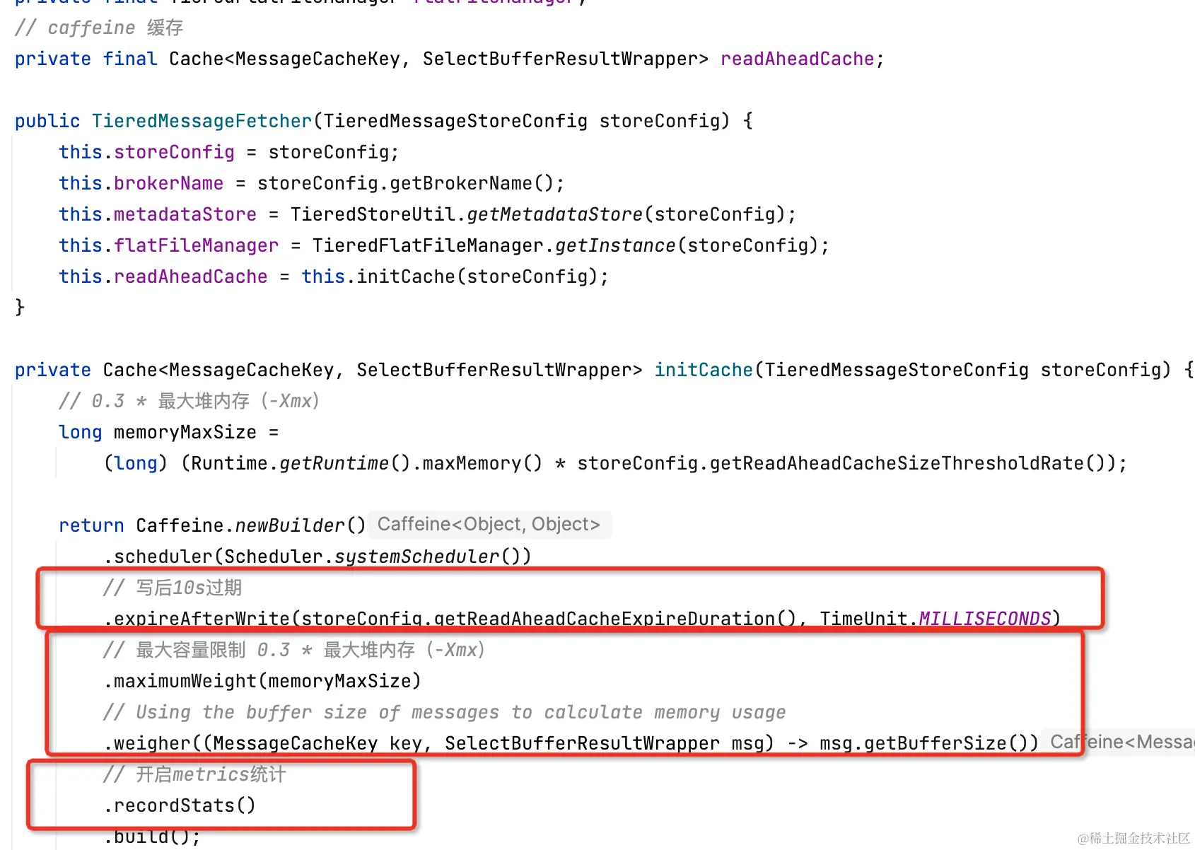 - tieredMetadataServiceProvider:分层存储-元数据存储,TieredMetadataStore实现类,官方实现TieredMetadataManager,默认将元数据存储在 {storePathRootDir}/config/tieredStoreMetadata.json;(类比kafka的remote.log.metadata.manager.class.name)