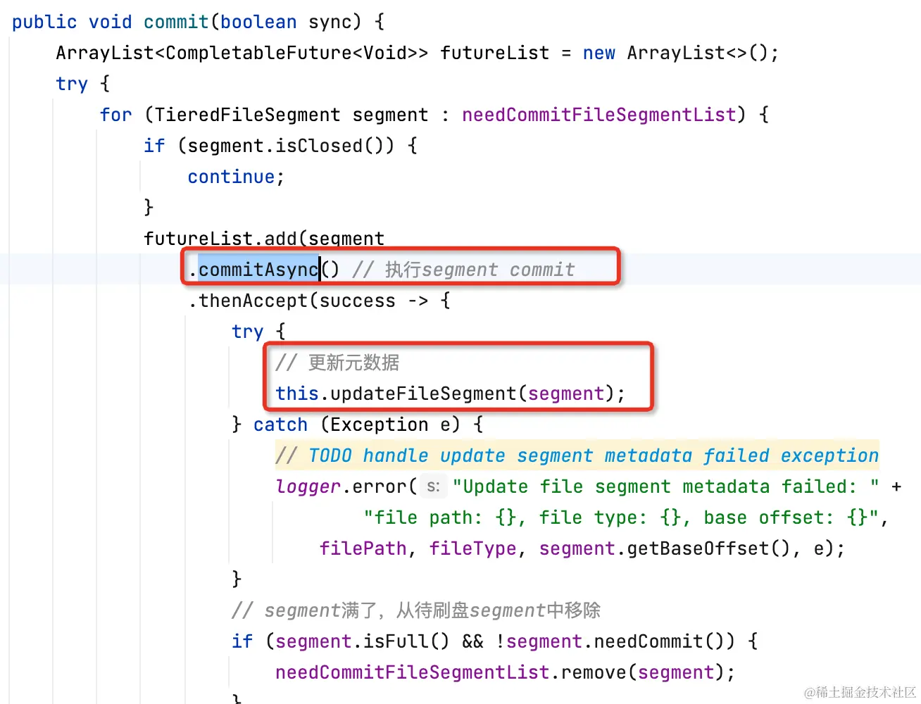 总体来说,segment写入分为两个阶段,先写内存buffer,再写外部存储(调用用户实现segment#commit0)。