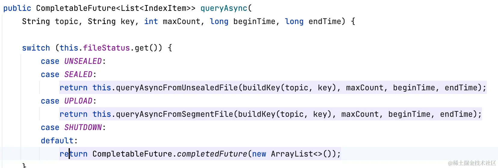 如果index文件是UPLOAD,则走外部存储查询(用户segment#read0)。