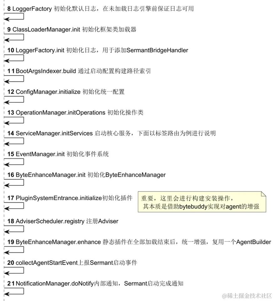 基于premain模式的和基于agent模式,区别在于是否为isDynamic。从这里我们可以看到这里提出了两个类值得我们去关注:AgentCoreEntrance、CommandProcessor,也即sermant这个项目的两个重点类。