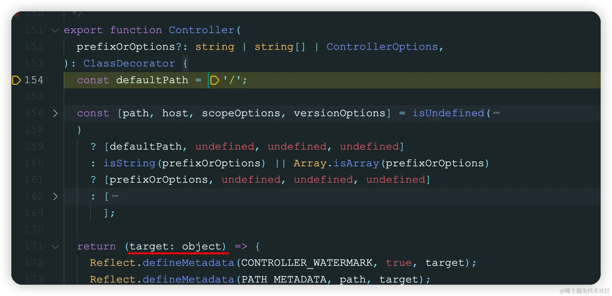 了解完这几个概念后再来看看Nest中的装饰器就很好理解了,把前面令人迷惑的代码再贴过来。