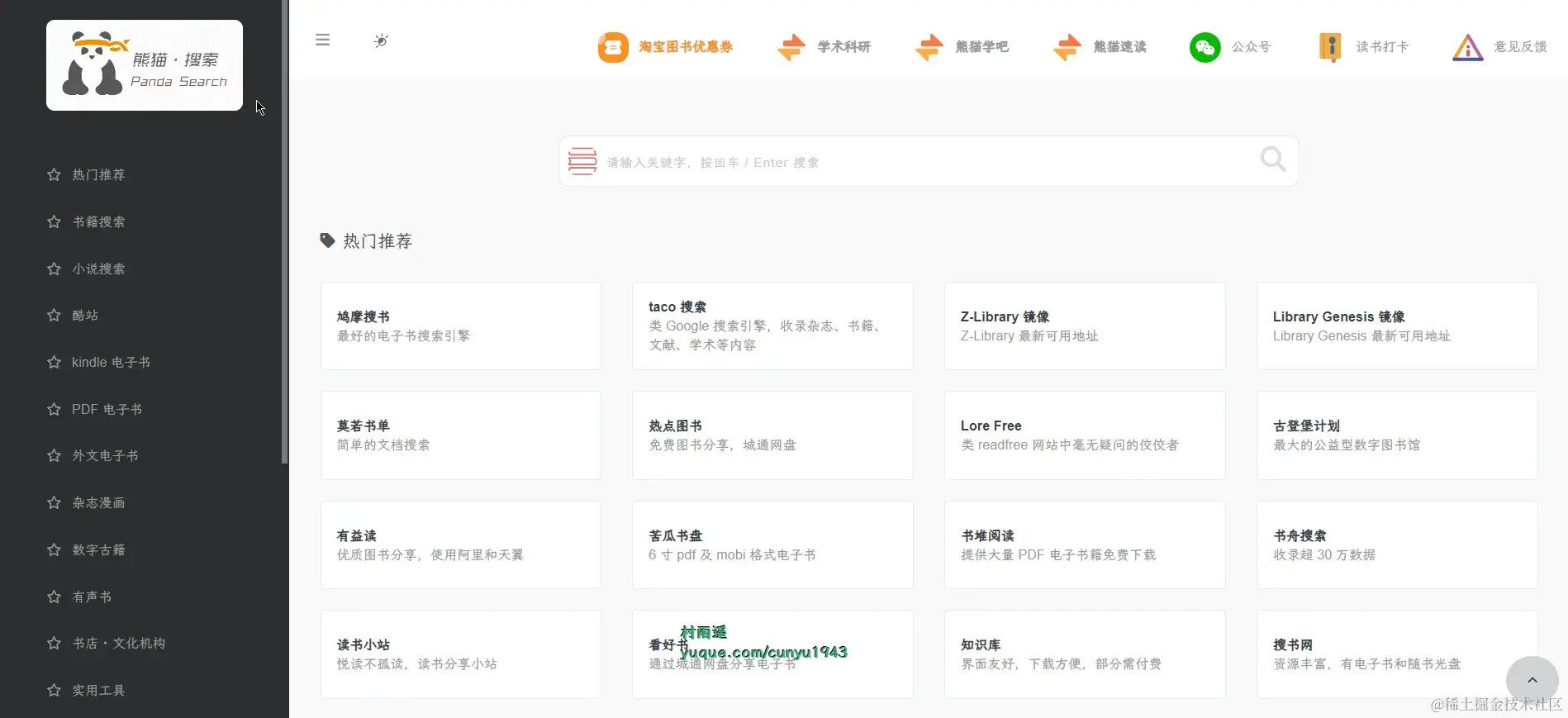 熊猫搜索,熊猫搜书,聚合电子书、文档搜索引擎,一站式搜索导航,方便快速导航搜索全网资源,读书学习必备导航站。