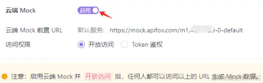点击 去开启,跳转页面后,定位到 云端Mock 右侧的开关,启用: