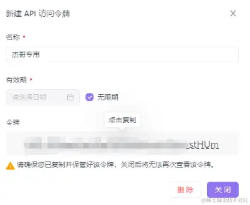 点击 账户设置 → API访问令牌 → 新建令牌,输入名称,设置下有效期,点击生成,生成的令牌要保存好,后面是看不到的了,只能 重置: