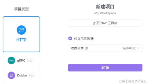 注册账号登录后,点击我的团队,在 My Workspace 里新建一个项目: