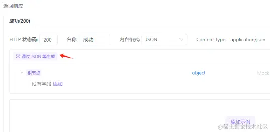 返回响应那里,点击 通过JSON等生成: