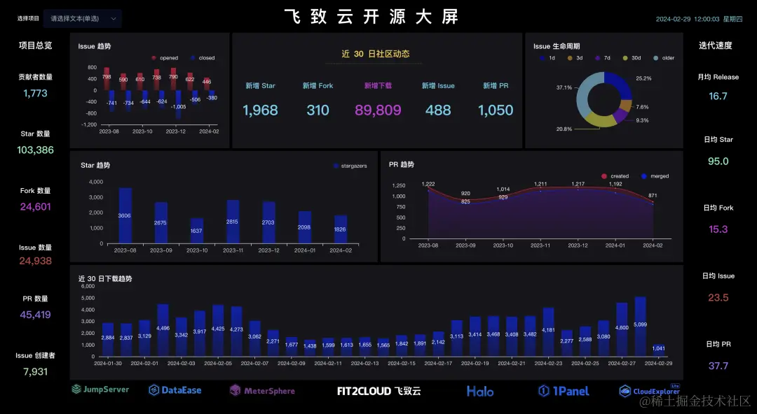 2024年2月飞致云开源软件运营数据概览(统计时间为2024.2.1~2024.2.29)