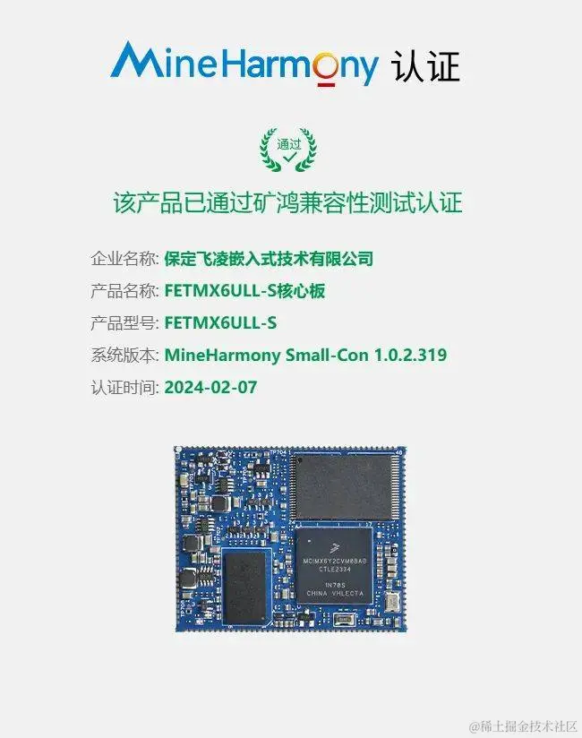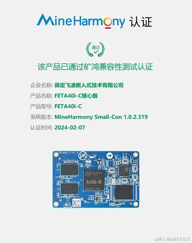 飞凌嵌入式FETMX6ULL-S核心板和FETA40i-C核心板近期通过了“矿鸿兼容性测试认证”, 这两款嵌入式核心板与矿鸿OS的结合将进一步推动煤矿行业的智能化进程。