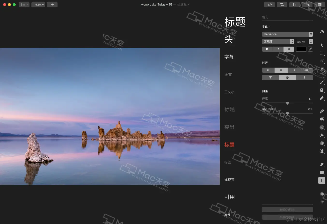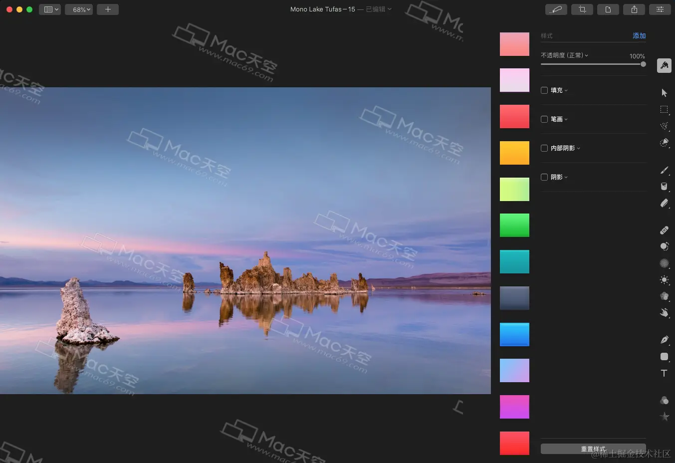 Pixelmator Pro mac中文版是Mac平台上一款专业的图片处理及编辑软件,pixelmator pro mac中文版具备绘图、裁剪、修复、克隆、锐化、调整颜色等功能,轻松帮助用户处理各种图像,新版本的Pixelmator Pro图像处理软件带来全新的界面和更多功能,欢迎各位来使用哦! 下载地址 www.mac69.com/mac/4053.ht…