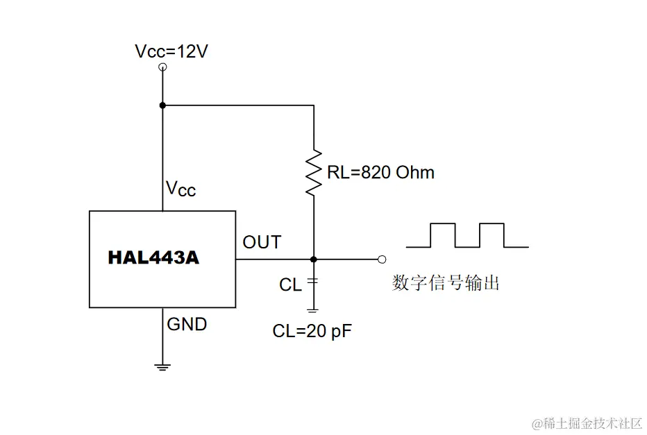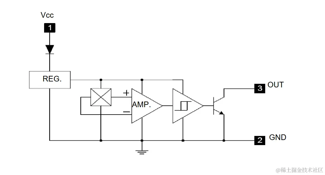 HAL443A单极性霍尔位置传感器是由内部电压稳压器、霍尔电压发生器、差分 放大器、温度补偿单