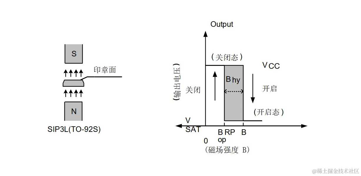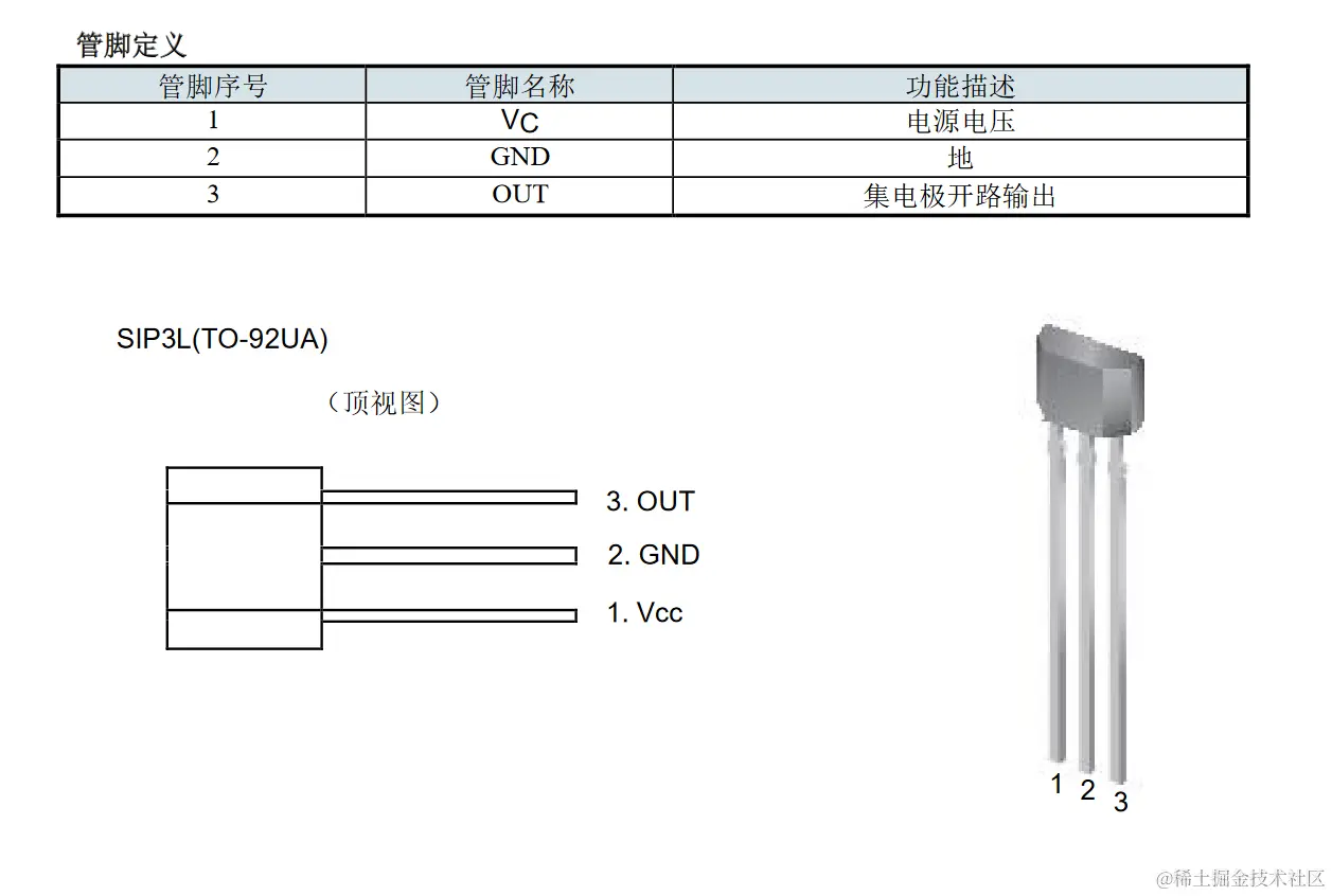 信号。它是一种单磁极工作的磁敏电路,适合于矩形或者柱形磁体下工作。工作温度范围为-40 ℃ ~150