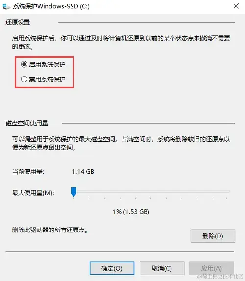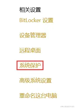 第二步:右侧点击 “系统保护” 功能,在新弹出的窗口中选择要关闭系统还原功能的磁盘,然后点击 “配置” 。