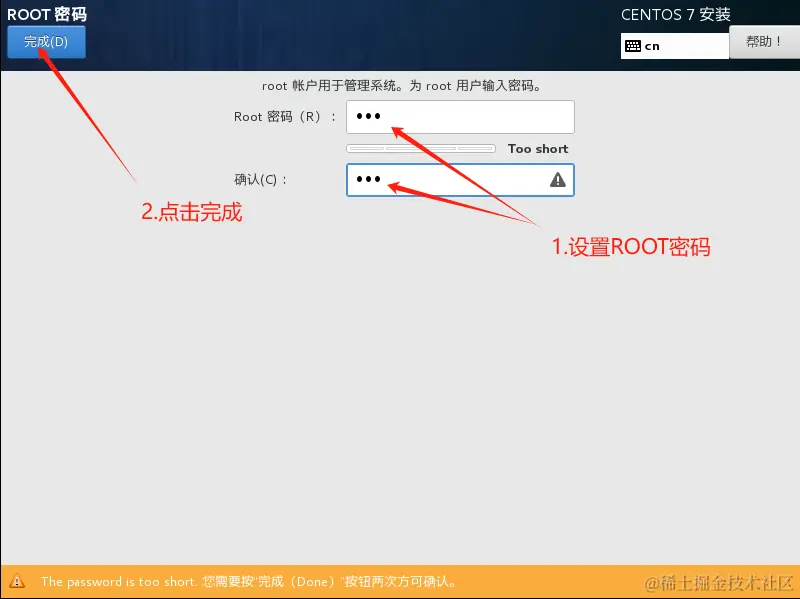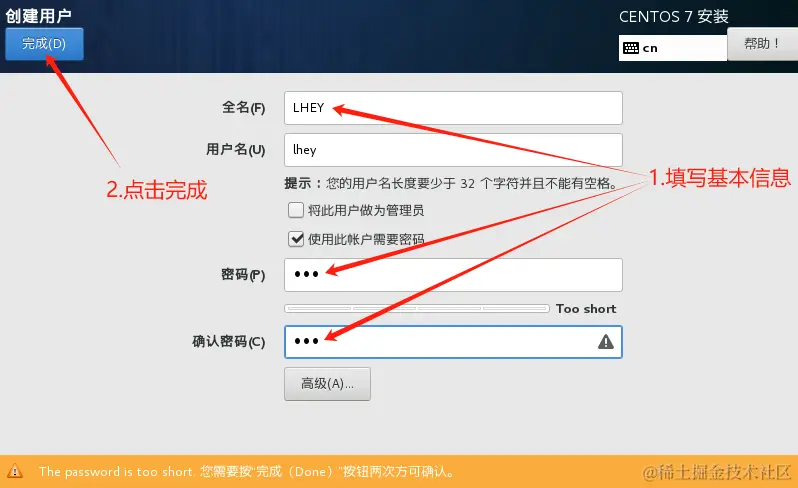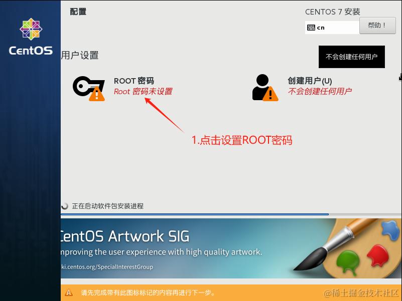 8.安装开始后,页面需设置用户设置,填写最高管理员密码和创建用户,如下图所示: