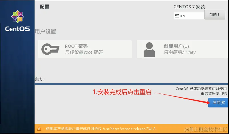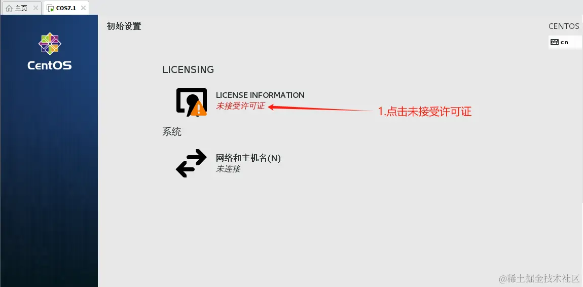 10.重启后,点击未接受许可证,同意许可协议,点击完成,如下图所示: