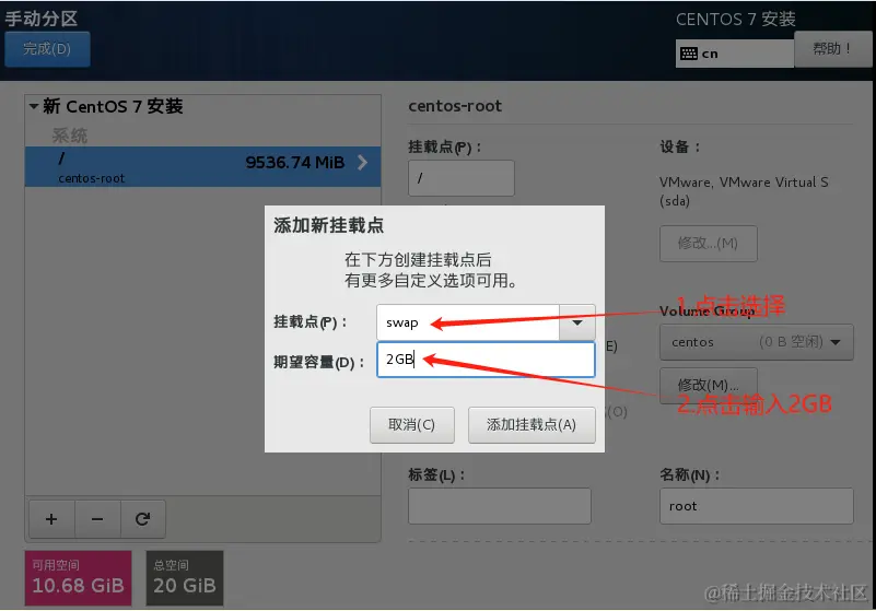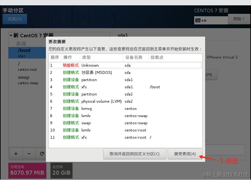 6.点击分区,设置分区参数,参数看个人需求,点击完成,授权接受更改,如下图所示: