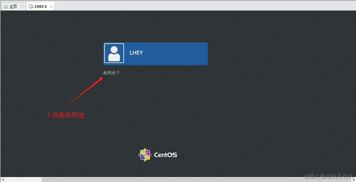 12.重启虚拟机后,点击未列出,登录最高管理员账户,如下图所示: