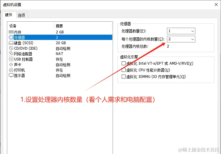 10.设置处理器的内核数量,也可根据电脑的自身情况配置,点击下一步,如下图所示: