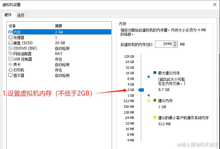 9.选择内存,根据自己的系统性能配置,不低于2GB,点击下一步,如下图所示: