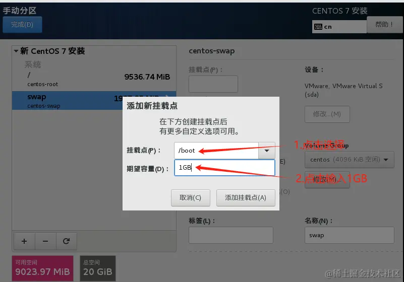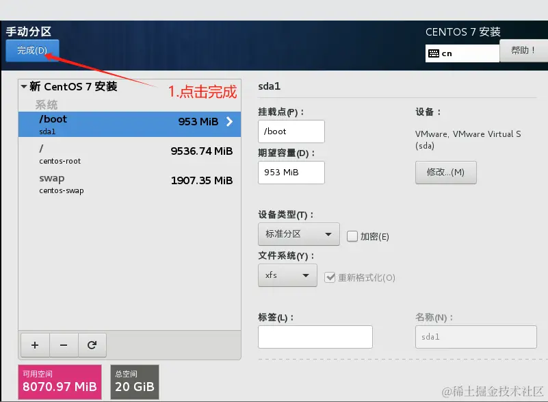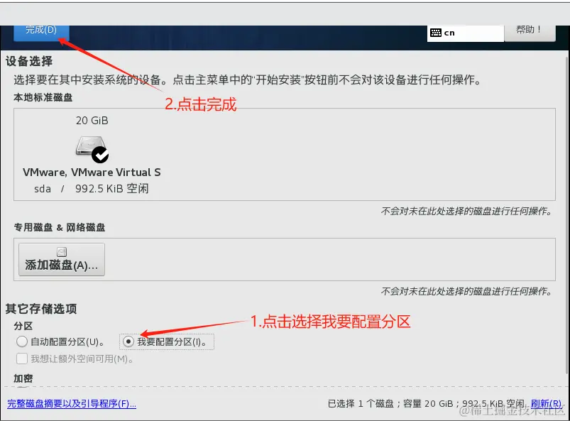5.点击安装位置,选择我要配置分区,点击完成如下图所示: