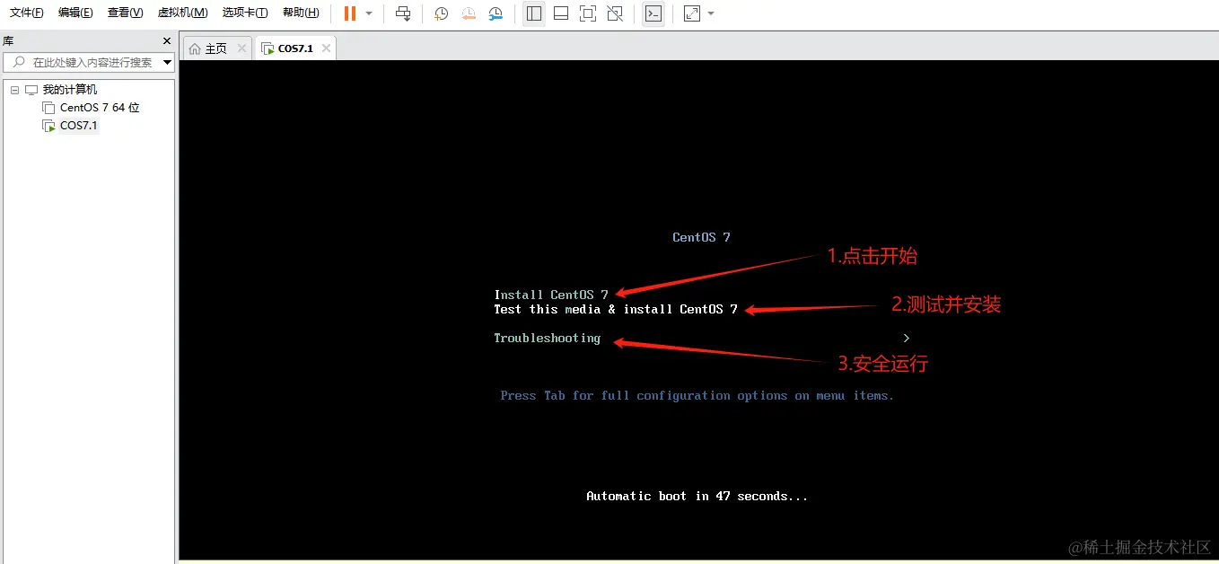1.点击安装好的虚拟机点击开启,如下图所示: