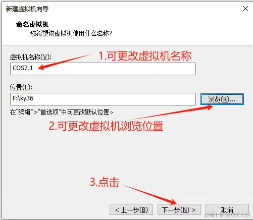 5.设置虚拟机安装的名字,名字随意,位置是自己安装虚拟机让你选择文件夹位置,点击下一步,如下图所示: