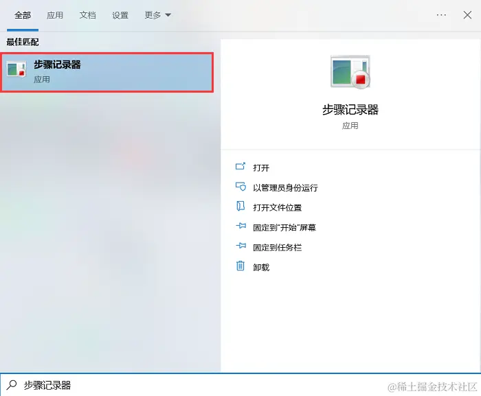 步骤1:在Windows的任务栏中键入 “步骤记录器” 并打开它。