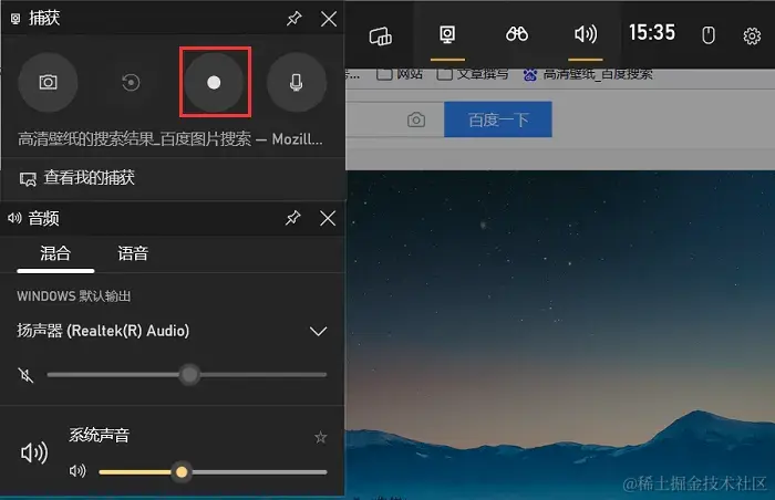 步骤3:在Xbox Game Bar界面中,点击 “录制” 按钮,此时界面上方会显示录制时间。