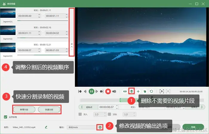 步骤3:完成录制后,点击 “停止” 按钮结束录制。此时,录制的视频会自动保存在软件默认的路径中,你可以使用页面上的工具对视频进行剪辑。