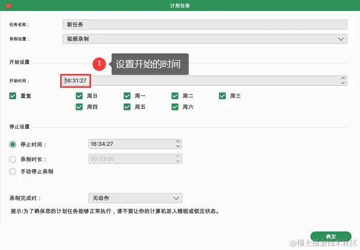 第3步:此外,软件提供了计划任务功能,通过设置好开始的时间,等到了目标时间后,软件就会自动开启录屏。
