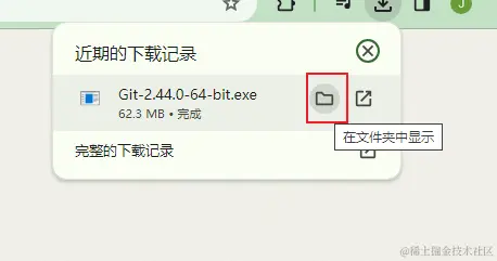 在浏览器可以看下载进度,点击在 [ 在文件夹中显示 ]