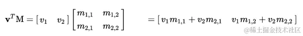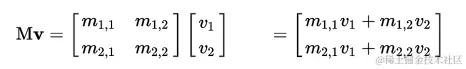 vec2 w = v * m; // = vec2(1. * 10. + 2. * 20., 3. * 10. + 4. * 20.)