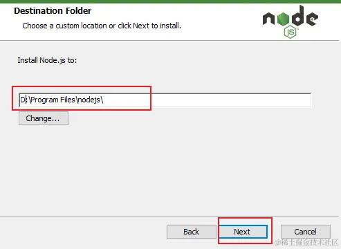 选择要安装的组件。我推荐保留默认设置,默认设置包括了npm,一路 [ Next ]即可